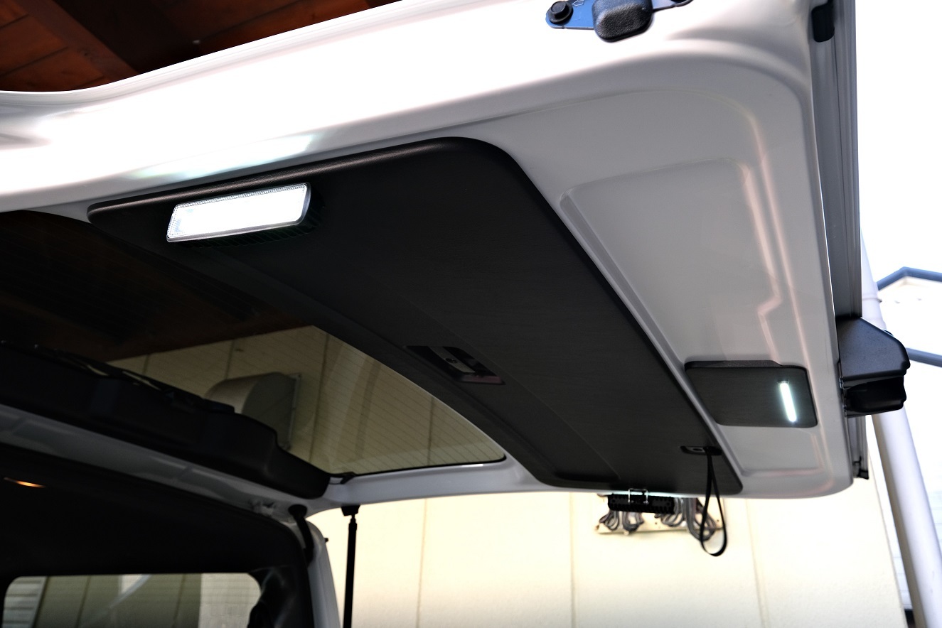 リヤゲートにはイカ釣り?用のLEDなどの照明を取り付けています。