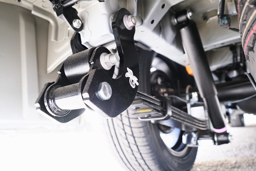 既存のパーツをスイング式のシャックルに交換するだけで走行時のリヤの振動や突き上げ感を劇的に改善、ハイエースが乗用車並の乗り心地に進化します。