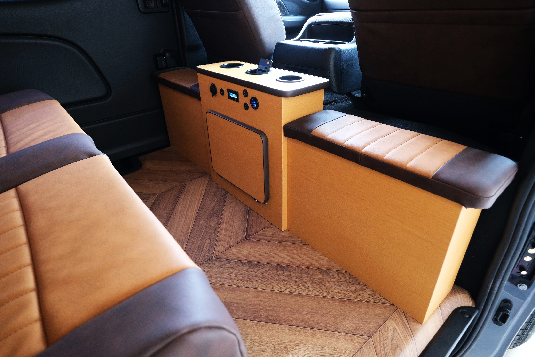 マット下に110Aサブバッテリー・走行充電器が入っています。