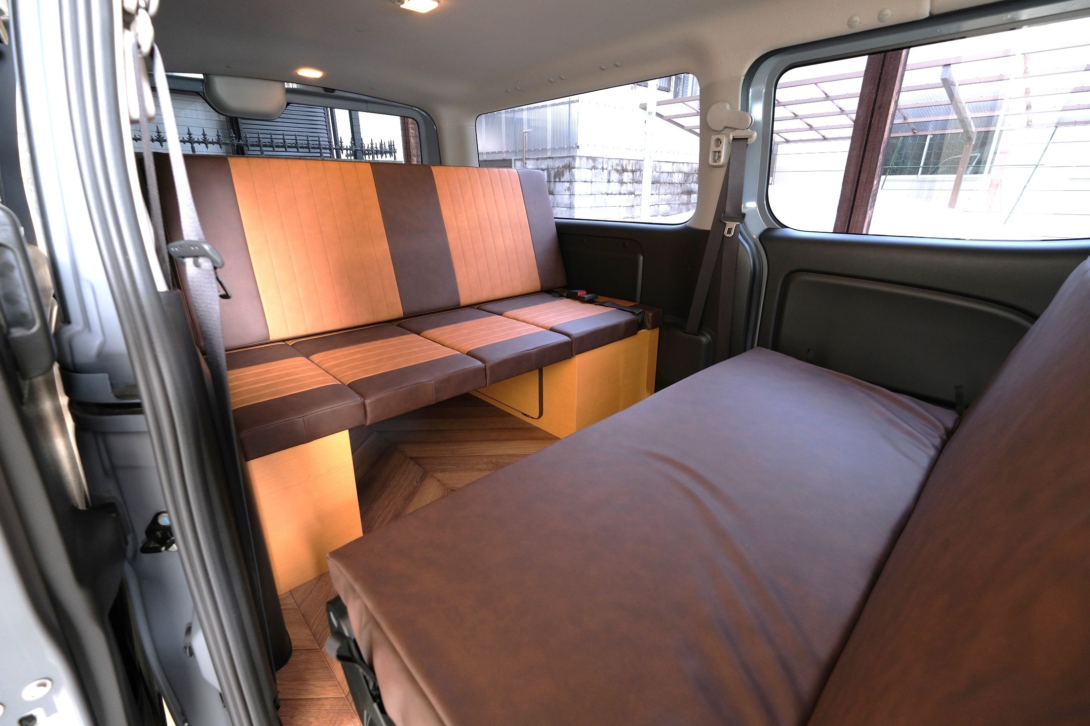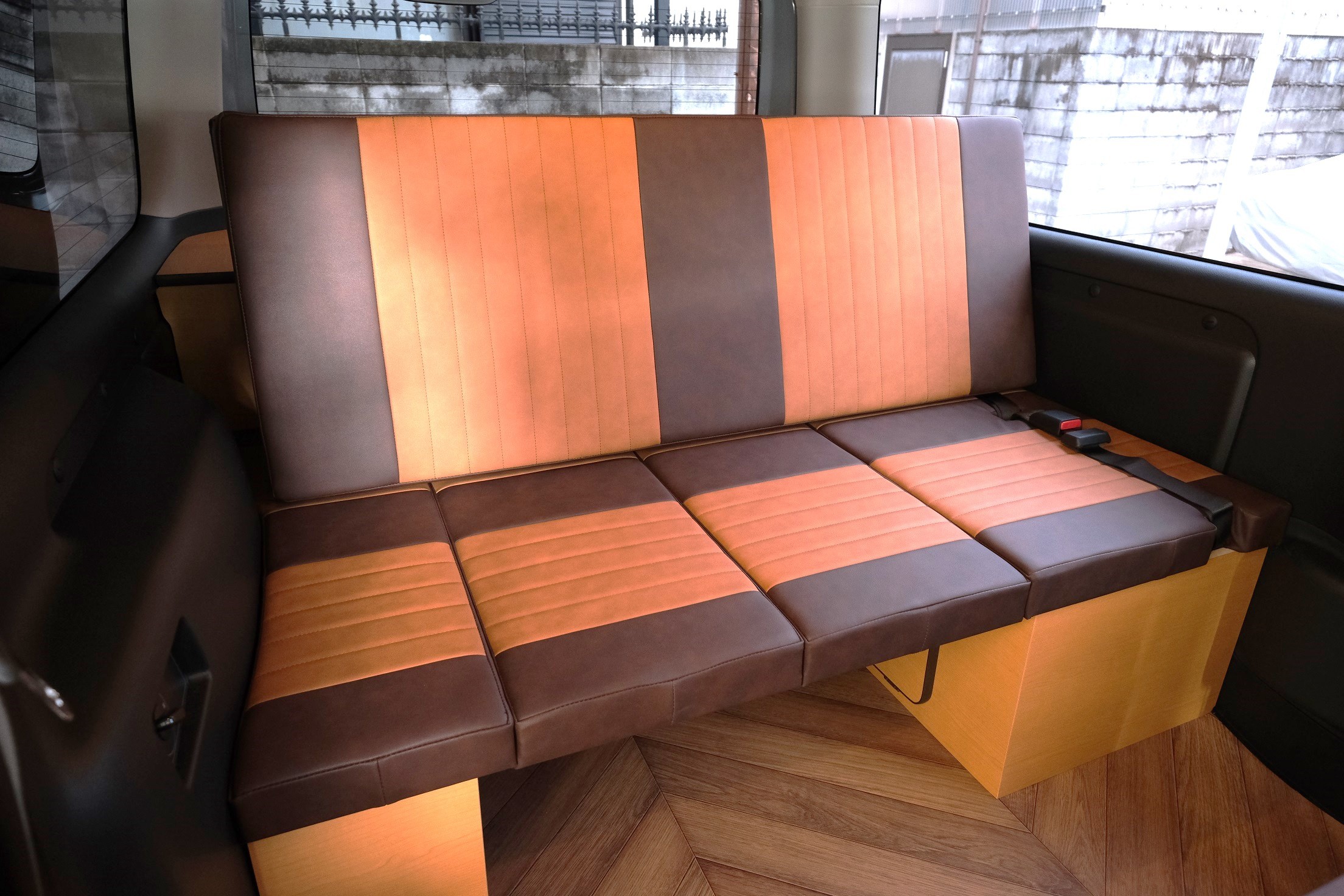 スライドドアを開けるとrevo sheet 1200mmで3名乗車用